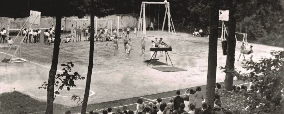Les gymnastes - Place des Fêtes - Juillet 1910 Au début de 20e siècle, les Sociétés de gymnastique et d’éducation physique sont très en vogue. Les valeureux gymnastes de l’association locale « La Vaillante » font de nombreuses démonstrations pour le plus grand plaisir des villageois. |