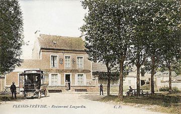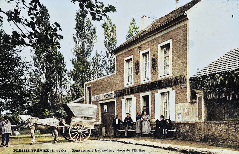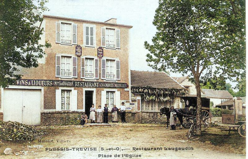 Auguste, le premier fils de Louis Laugaudin, était maçon à son arrivée au hameau du Plessis-Trévise puis il créa une petite entreprise de maçonnerie implantée à gauche du café. En 1879, il se marie à Pontault-Combault avec Suzanne Pappens qui va alors assurer l'activité de marchande de vins.