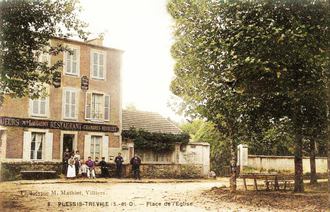Le recensement de 1866 de La Queue-en-Brie mentionne un couple vivant au hameau du Plessis-Trévise dont le mari est marchand de vins. A cette date, la probabilité qu’ils résident sur la place de l’église est forte. Les personnes identifiées sont Auguste Caudron et sa femme Catherine This. Ils ont un fils Pierre Augstin.