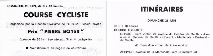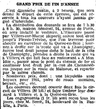 La course dont il est question traversait par deux fois la commune du Plessis-Trévise en empruntant la route de Villiers-sur-Marne à la Queue-en-Brie.