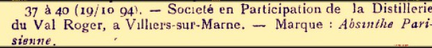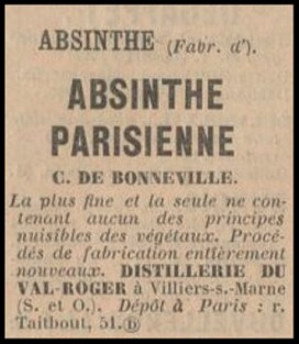 Dans un article intitulé "Les boissons malsaines", le journal "L’Attaque" du 24 février 1896 attire l'attention sur les méfaits de celles-ci et fait l'éloge de la qualité de l'absinthe du Val Roger :