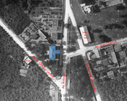 Elle situe précisément la construction (fond bleuté) presque dans le prolongement de l'avenue actuelle Jean Charcot. La propriété est bordée par l'avenue Ardouin (anciennement avenue des Peupliers) et par l'avenue du Général Leclerc (anciennement avenue de Champigny).