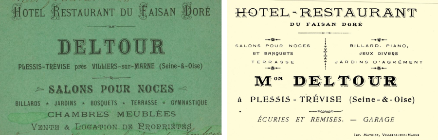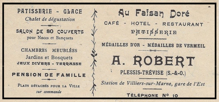A la fin du 19e siècle, alors que Le Plessis-Trévise n’est encore qu’un hameau, nombre d'auberges, pensions de famille, guinguettes s’installent. Parmi les principales, citons :