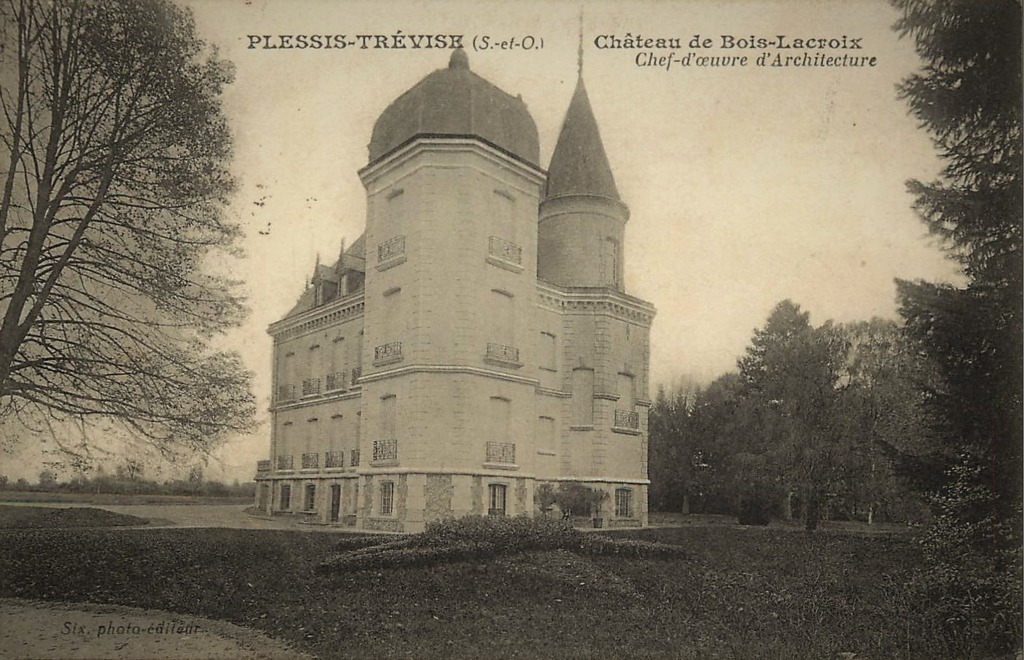Tant et si bien que toutes les cartes postales illustrant le château de Bois-Lacroix sont domiciliées au Plessis-Trévise. Ainsi, dans la mémoire collective, un devoir d’écolière décrivant la vie au Plessis-Trévise en 1944, rédigé sous la directive de Mme Salmon, affirme « Toujours enfoui dans la verdure, se trouve un château qui est maintenant sur la commune de Combault. En 1907 ce territoire appartenait au Plessis-Trévise... ».