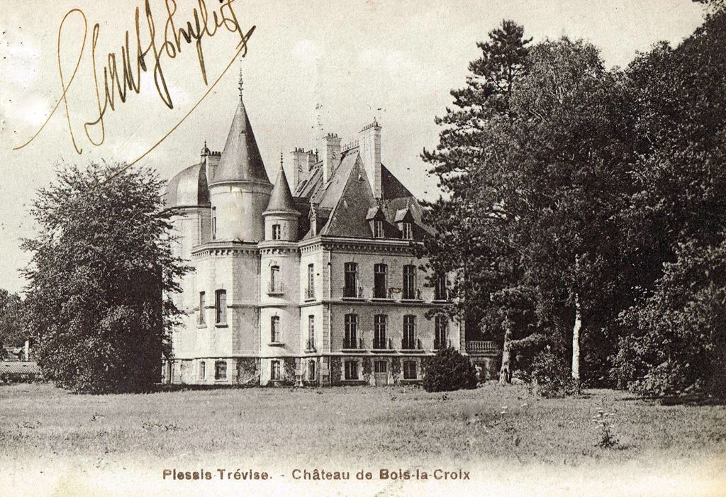 Dans son ouvrage «Trois paroisses de la Brie française: Pontault, Berchères, Combault», Edouard Lebeau rapporte : «Aux confins Est du domaine de La Lande (commune du Plessis-Trévise), qui appartint, au début du XIXe siècle, au maréchal Mortier, en bordure du chemin rural de La Queue-en-Brie à Gournay, a été construit, aux environs de 1870, au lieudit Bois-la-Croix, un modeste cottage. Le propriétaire d'alors (Jean Badeuil, négociant en vins parisien) fit, plus tard, édifier non loin de là, une nouvelle demeure qui prit l'allure d'un véritable château».