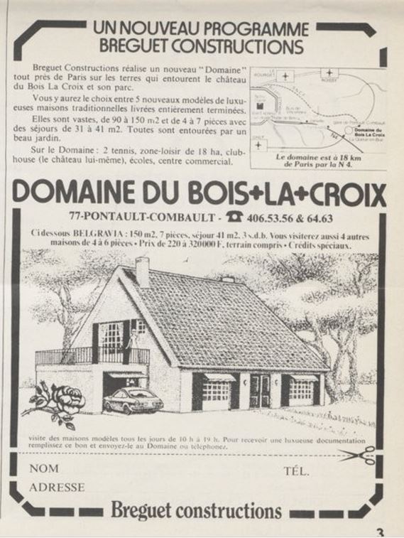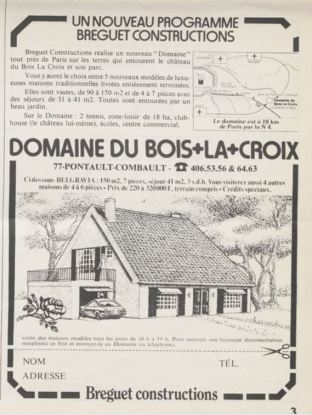 En 1971, un contrat de vente est passé entre la SCI Bois Lacroix et le PDG de la société EGTP (Etude Gestion et Travaux de Paris). L'objectif est de constituer un ensemble immobilier composé de maisons individuelles et collectives, destinées à être vendues et placées en co-propriété. L'ensemble s'étend sur environ 83 hectares et comprend le chateau et son parc. Le montant de la transaction s'élève à 6, 4 millions de francs de l'époque.