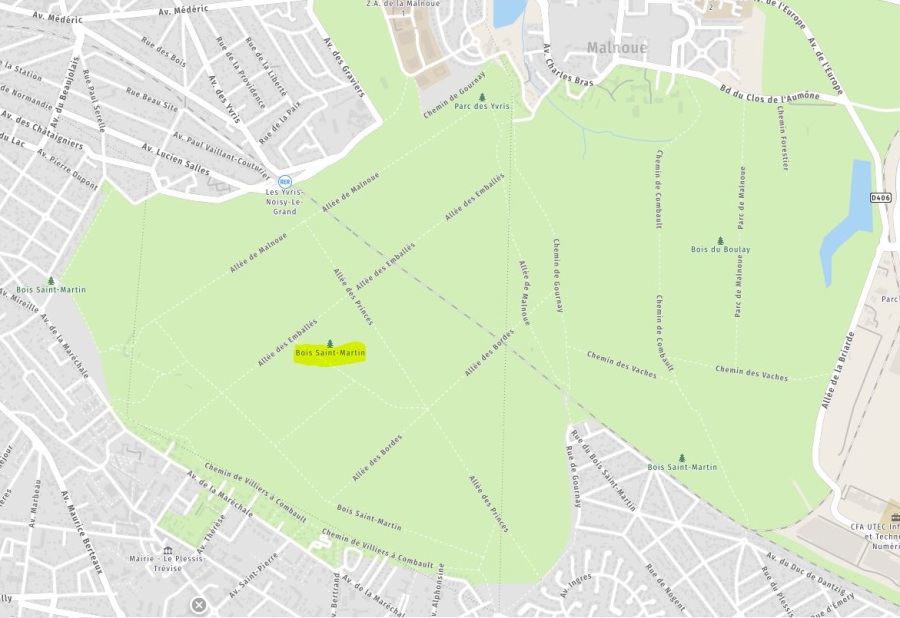 Note : de nombreux plans et documents font mention de "Bois Saint-Martin" plutôt que "Bois de Saint-Martin".