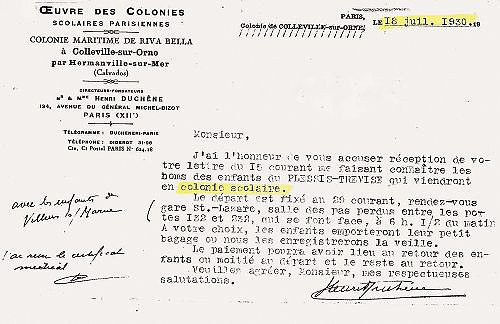 On précise plus loin que « pour les fillettes, les coiffures à la mode (à la Ninon (sic)) est recommandée ; elle est élégante, hygiénique et propre ». La colonie se rend plusieurs années de suite à Colleville-sur-Mer dans le Calvados dans le cadre des Œuvres des Colonies scolaires parisiennes. Ces premières initiatives seront suivies de bien d’autres qui s’inscriront aussi bien dans le cadre péri scolaire que dans la cadre scolaire.