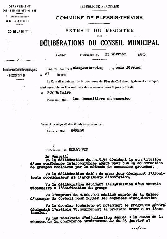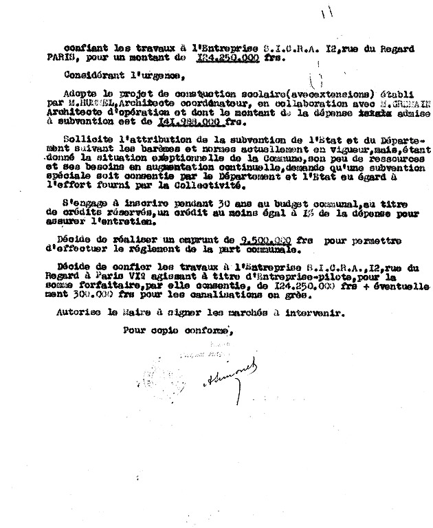 "...Nouvelle municipalité, nous constatons que, dans un temps très court, nous ne pourrons plus assurer l'indispensable à la vie collective. Quand je dis l'indispensable, je pense à l'instruction des enfants; il nous faut des classes, nous ne pouvons pas laisser des enfants dans la rue..."
