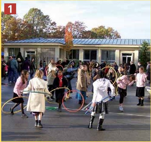 La matinée a débuté par une surprise avec une récréation séparée (les filles du coté Monnet, les garçons du coté Moulin), histoire de rappeler une époque passée.