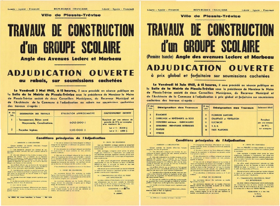 Le 8 mars 1968, la pression démographique conduit inexorablement le Conseil municipal du Plessis-Trévise à approuver la nécessité de réaliser la construction d’un nouveau groupe scolaire sur un terrain de 7308 m2 à l’angle des avenues du Général Leclerc et Marbeau.
