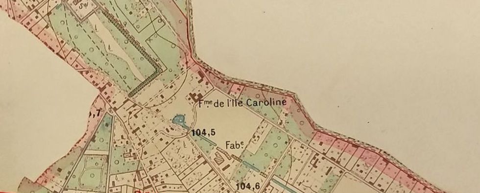 Nul doute qu’il s’agit là de la parcelle qui contenait l’Ile Caroline sur laquelle a été construite, en 1967, la résidence éponyme. Ne lit-on pas d’ailleurs « qu’elle est traversée aux deux tiers de sa longueur par une plantation d’ormes de forme octogone au milieu de laquelle est une pièce d’eau de même figure ».