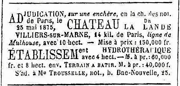 Arsène Ozanne, nouveau propriétaire du château en 1875, tentera en vain d’y poursuivre durant quelques années une activité médicale sous le nom de «Société anonyme hydrothérapique de Plessis-Lalande La Pouponnière » sous la direction du docteur Joseph Scaglia.