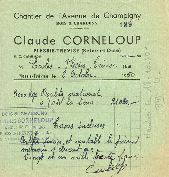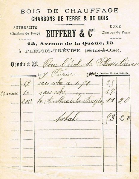 "Dans les années 1960, les poêles à charbon laisseront place aux poêles à mazout (fabriqués au Plessis-Trévise par les Etablissements Rouquet, avenue du Général de Gaulle, face à la propriété Priolet) plus souples d’utilisation. Enfin en 1972, l’Ecole du Centre sera dotée du chauffage central ".
