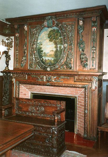 cheminée correspond tout à fait au style renaissance très en vogue en cette fin de 19e siècle et n'a rien de commun avec les cheminées en marbre du château de La lande.