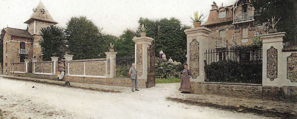 En regardant attentivement, il est possible de discerner dans les bois le chemin qui rejoint le carrefour des avenues Gonzalve et Aubry. Chemin qui passait alors entre le bâtiment en meulière et les serres (cf. vue agrandie).
