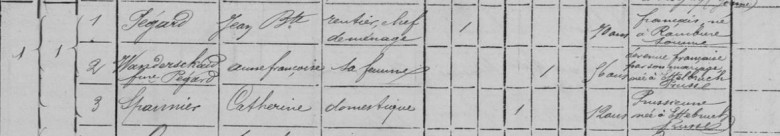 Jean Baptiste PEGARD est né en 1806 à Rambures (Somme). Il épouse Anne Françoise WANDERSCHERED, née en 1816 à Ettelbruch (Prusse). De leur union, ils auront un fils né en 1838 à Couddes (Indre).
