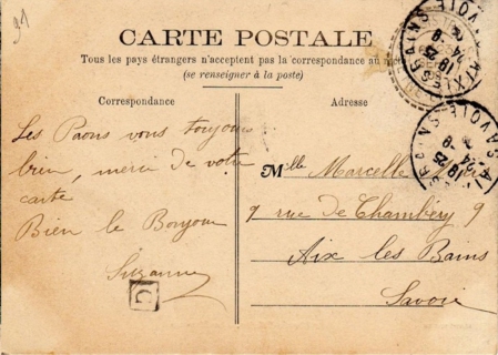 Quant à Marcelle, elle épouse Gilbert Joseph ALMERAS en 1935 à Paris 15e. Elle revend la propriété familiale (Villa Sans-Gêne) en 1936. Elle décède en 1955 à Villeneuve d'Ormont (Gironde).