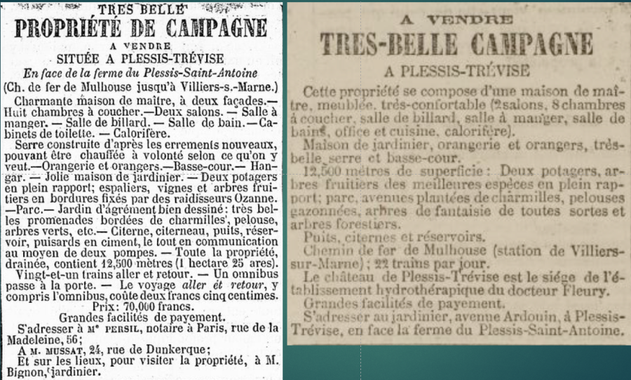 De 1864 à 1867, de mystérieuses annonces immobilières sont publiées