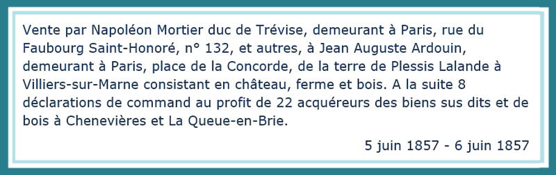 Mais au règlement de la succession de la duchesse de Trévise, en 1857, ses enfants vendent le domaine.