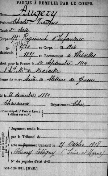 « Par jugement du Tribunal Civil de la Seine en date du 21 novembre 1918, la Nation a adopté la mineure Elizabeth Françoise Augery ».