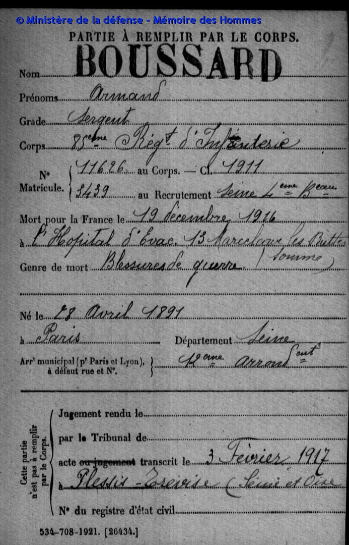 Il se marie en novembre 1915 pendant qu'il était mobilisé.