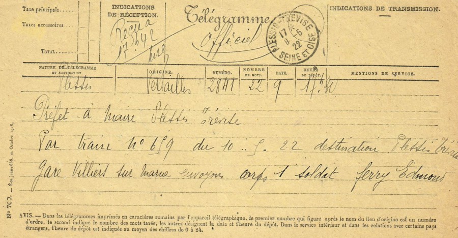 Edmond Fery est le dernier poilu du Plessis-Trévise tué pendant la guerre 1914-1918,