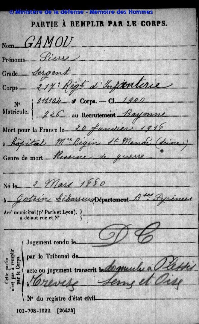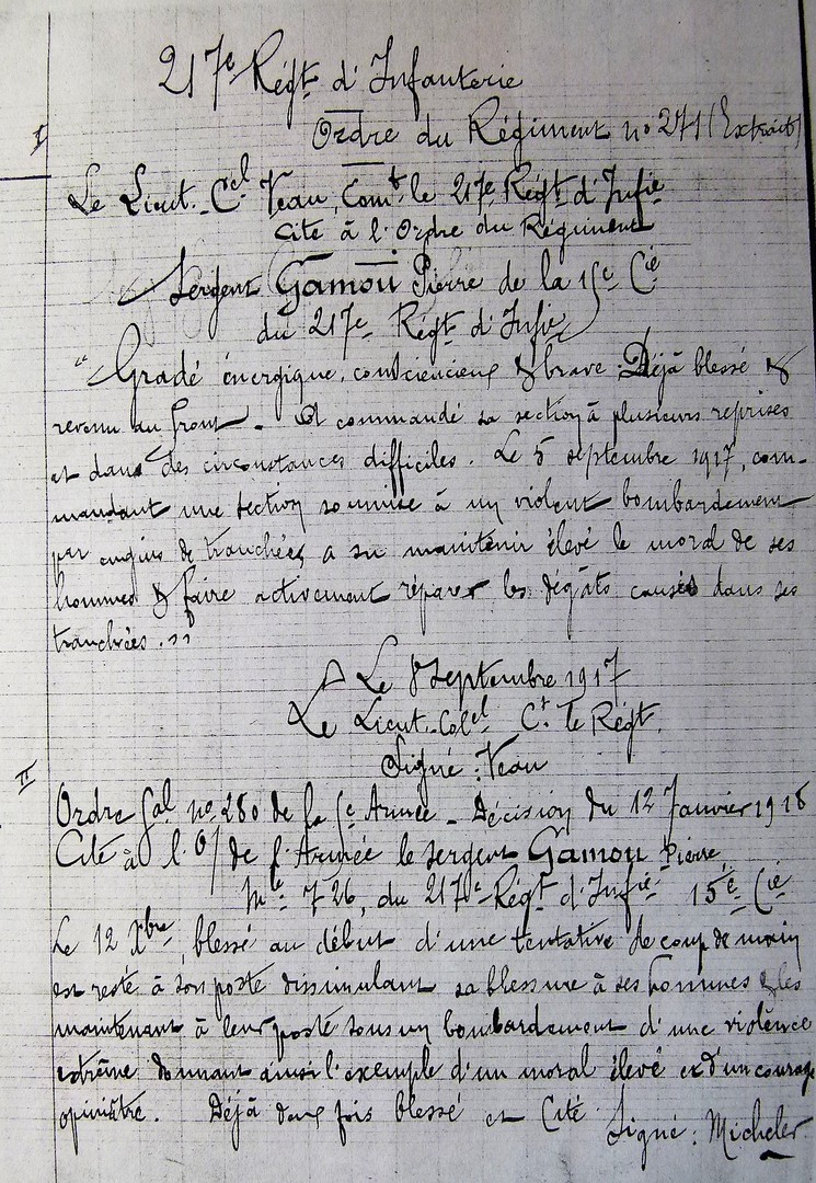Citation Pierre Gamou (source : L’Illustration 02 1919)