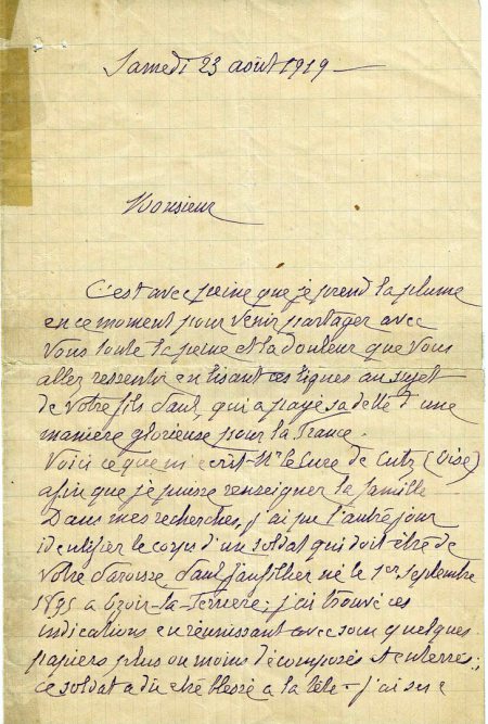 Seul André en reviendra. Auguste et Paul laisseront leur vie au front à deux semaines d’intervalle en mai 1918.