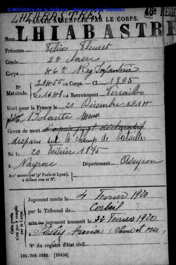 Marthe Juliette sa seconde fille a été adoptée par la nation en vertu du jugement rendu par le tribunal civil de la Seine le 8 8 bre 1919, Elle s’est mariée au Plessis-Trévise en 1928 avec Jean Jaillet.