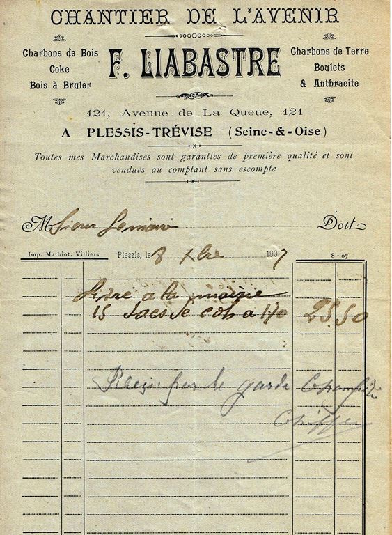 Félix Lhiabastres était un des charbonniers du Plessis-Trévise au début du 20ème siècle.