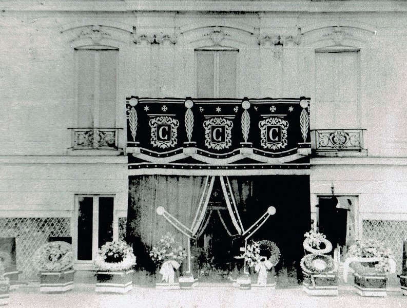 Ce dernier, de nationalité grecque, réside au Caire, où il y représente la banque Rothschild. Il semble qu'à ce titre, il effectue régulièrement des séjours d'affaires parisiens qui l'amène à fréquenter les réunions mondaines. Le 19 aout 1882, le journal "Le Gaulois" nous apprend qu' "une jeune femme des plus gracieuses et des plus sympathiques, appartenant à la colonie égyptienne de Paris, Mme Ambroise Sinadino née Nicopoulo, vient d'être enlevée en 3 jours par une péritonite. Elle avait 25 ans".
