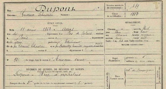 Sa fiche militaire le décrit comme un jeune homme de 1,64m, aux cheveux blonds et aux yeux bleus,