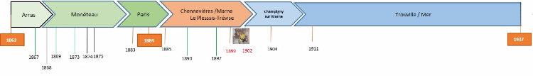- Arrivé en 1885, au hameau de Plessis-Trévise, alors commune de Chennevières, il acquiert une propriété