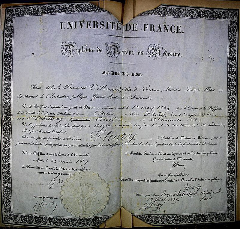 Louis Joseph Désiré Fleury est né le 28 novembre 1810 à Saint-Pétersbourg (Russie) de parents français. « Mon père, disait-il, français d’origine, de naissance et de cœur, était, malgré sa qualité d’émigré, un ardent patriote ; il adorait la patrie qu’il avait été obligé de fuir, après avoir vu la tête de mon grand-père (Hercule Rossay, Comte de Fleury) tomber sous le couteau révolutionnaire. Ma mère, alsacienne, mais d’origine germanique, était plutôt allemande que française ».